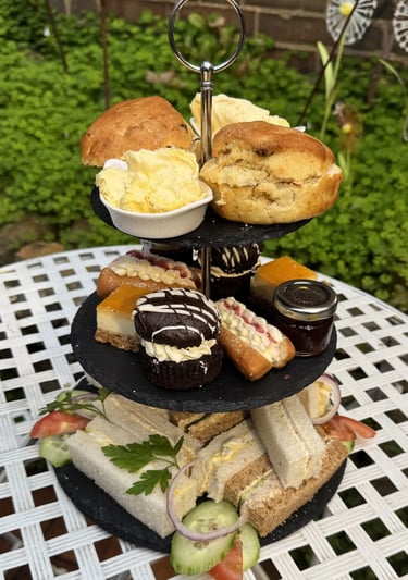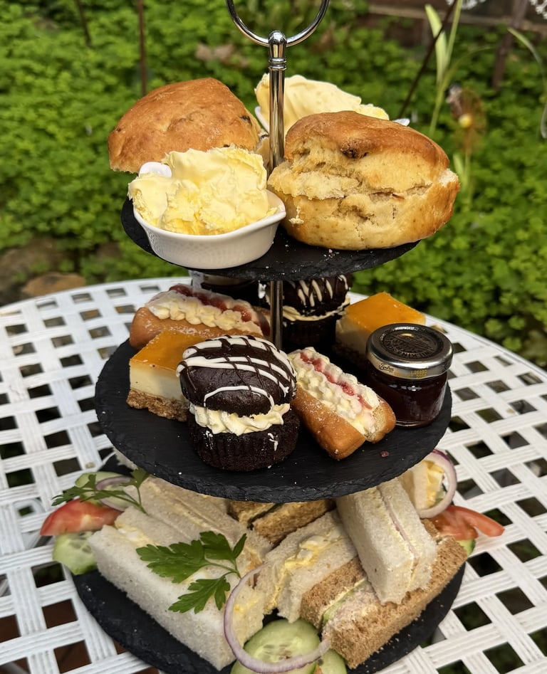 Enjoy a delightful three-tier stand with unlimited tea and coffee.
